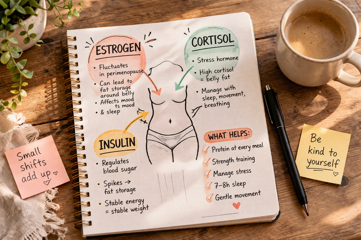 Hormones are like traffic signals for your body. They influence how you burn fat, store energy, and regulate hunger. If this sounds familiar, you’ll want to understand the deeper drivers behind menopause weight gain and how to actually work with your body instead of against it.